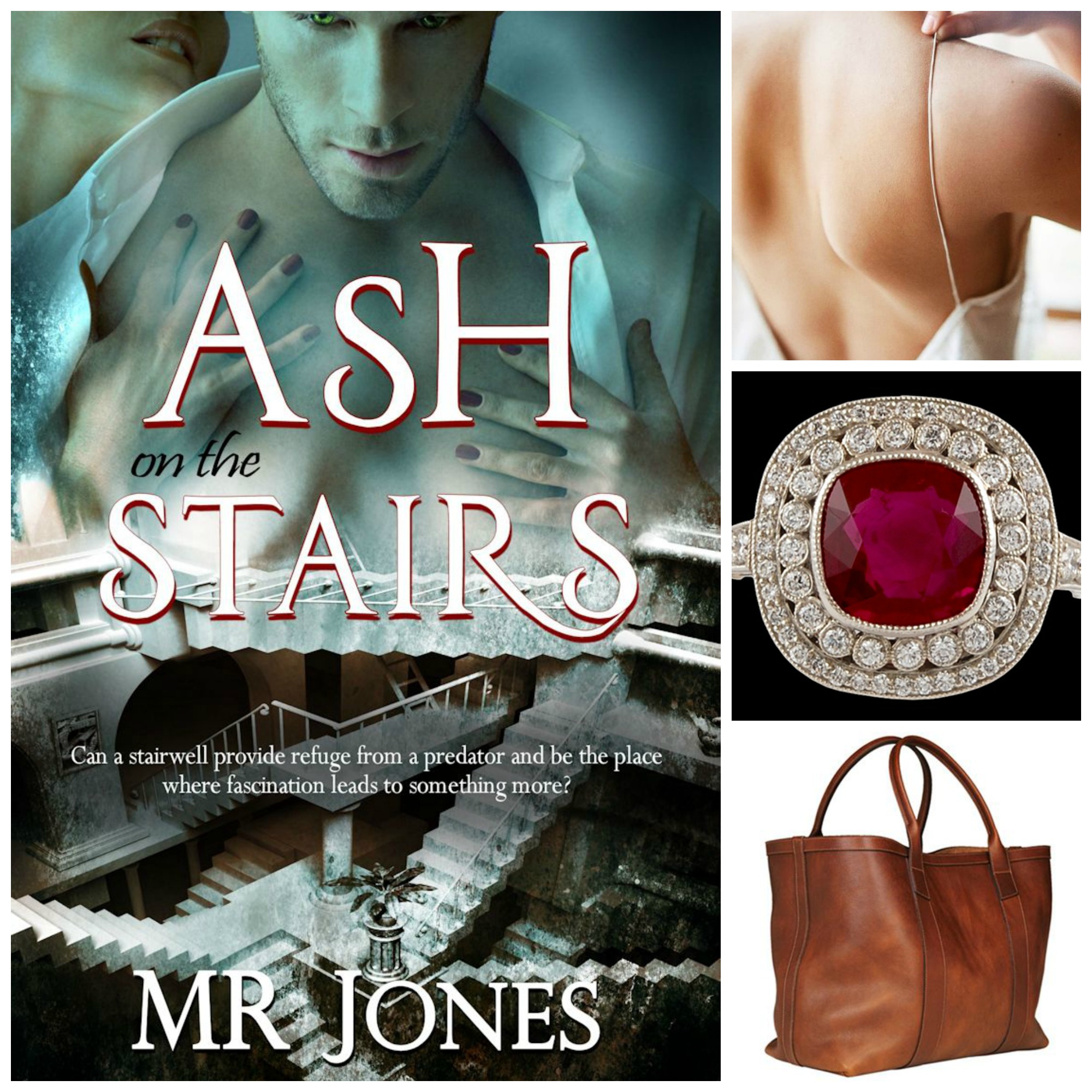 I perused Pinterest for images to add to the book cover. I found a platinum, ruby. and diamond ring, red Manolo heels, red ballet shoes, and the perfect Jesse tote. These and a few other images that fit my mind’s eye are what I used here.